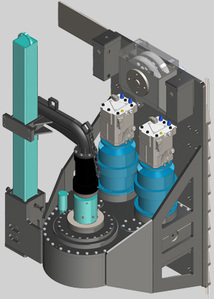 Designed to operate with two Linde hydraulic motors and equipped with two Brevini reducers, this head delivers a maximum torque of 13,000 kgf.m while remaining compact. This configuration reduces component wear and provides a significant increase in productivity and performance.