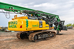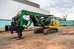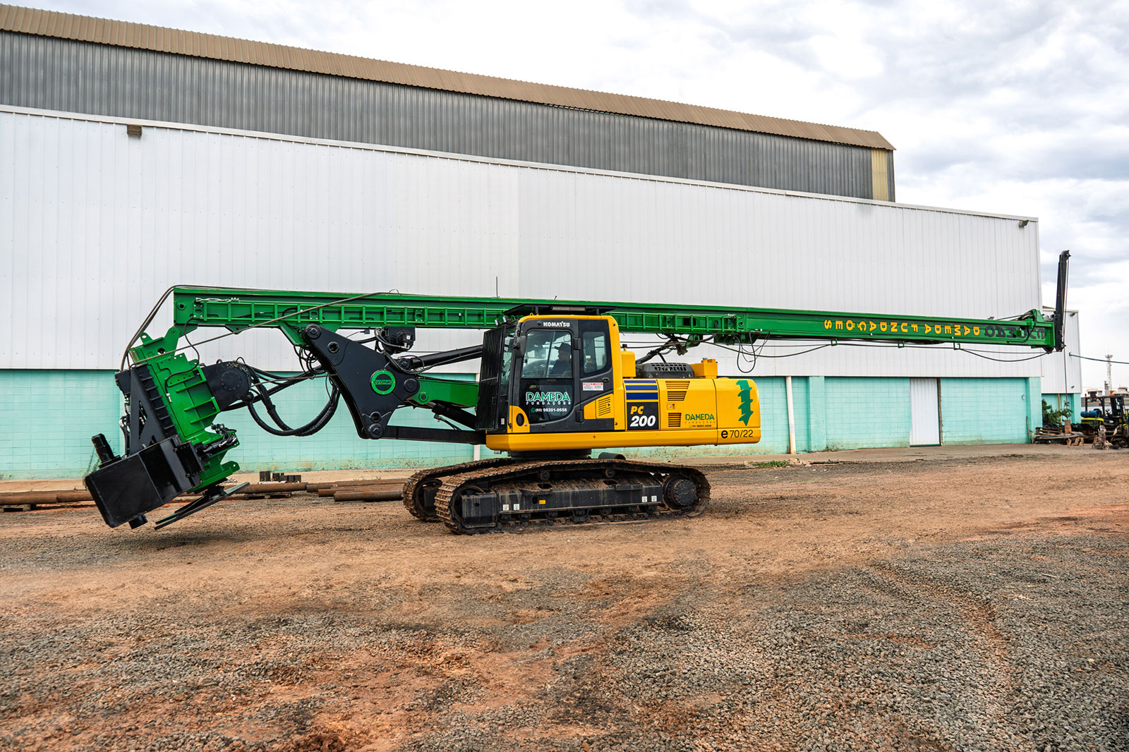 The E70/22 drilling rig by EVOMAQ® delivers high torque compared to machines typically classified as large-size equipment. Its drilling capacity reaches diameters of up to 700 mm (27.5 in) and depths of up to 22 m (72 ft). Built on an excavator chassis.