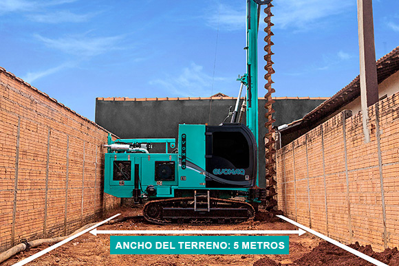 La perforadora de estacas de Hélice Continua de pequeño porte de EVOMAQ puede ejecutar la cimentación en áreas complejas con un terreno de al menos 5 metros de ancho, sin afectar las construcciones vecinas.