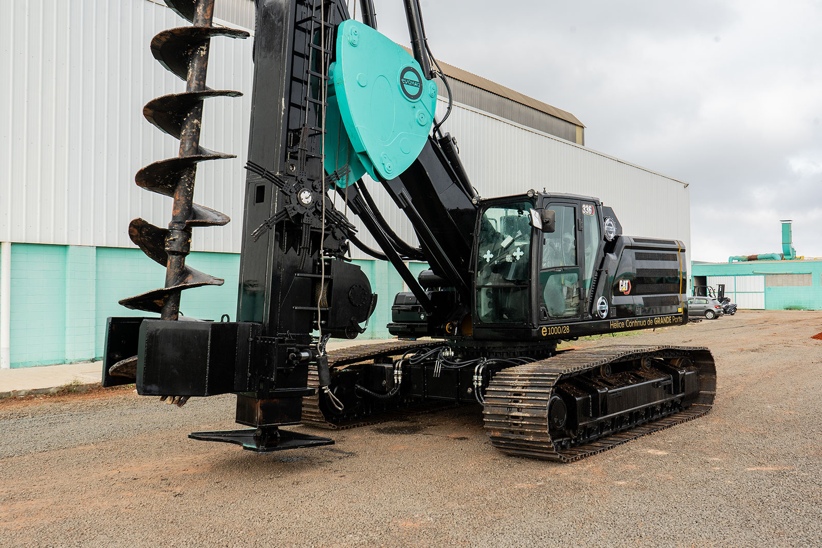O equipamento também conta com um giro de 360 graus, que potencializa ainda mais a utilização do pantógrafo. A junção desses dois recursos garante autonomia de alcance inclusive para estacas posicionadas em todo o entorno da máquina.