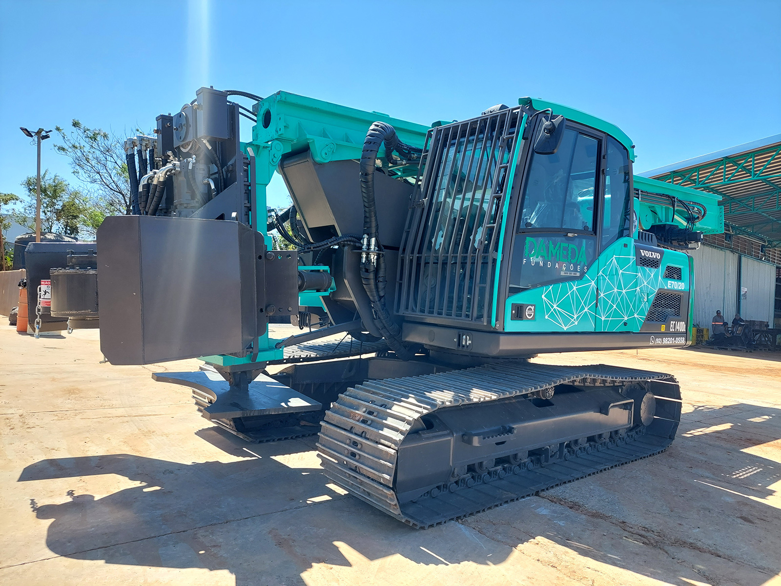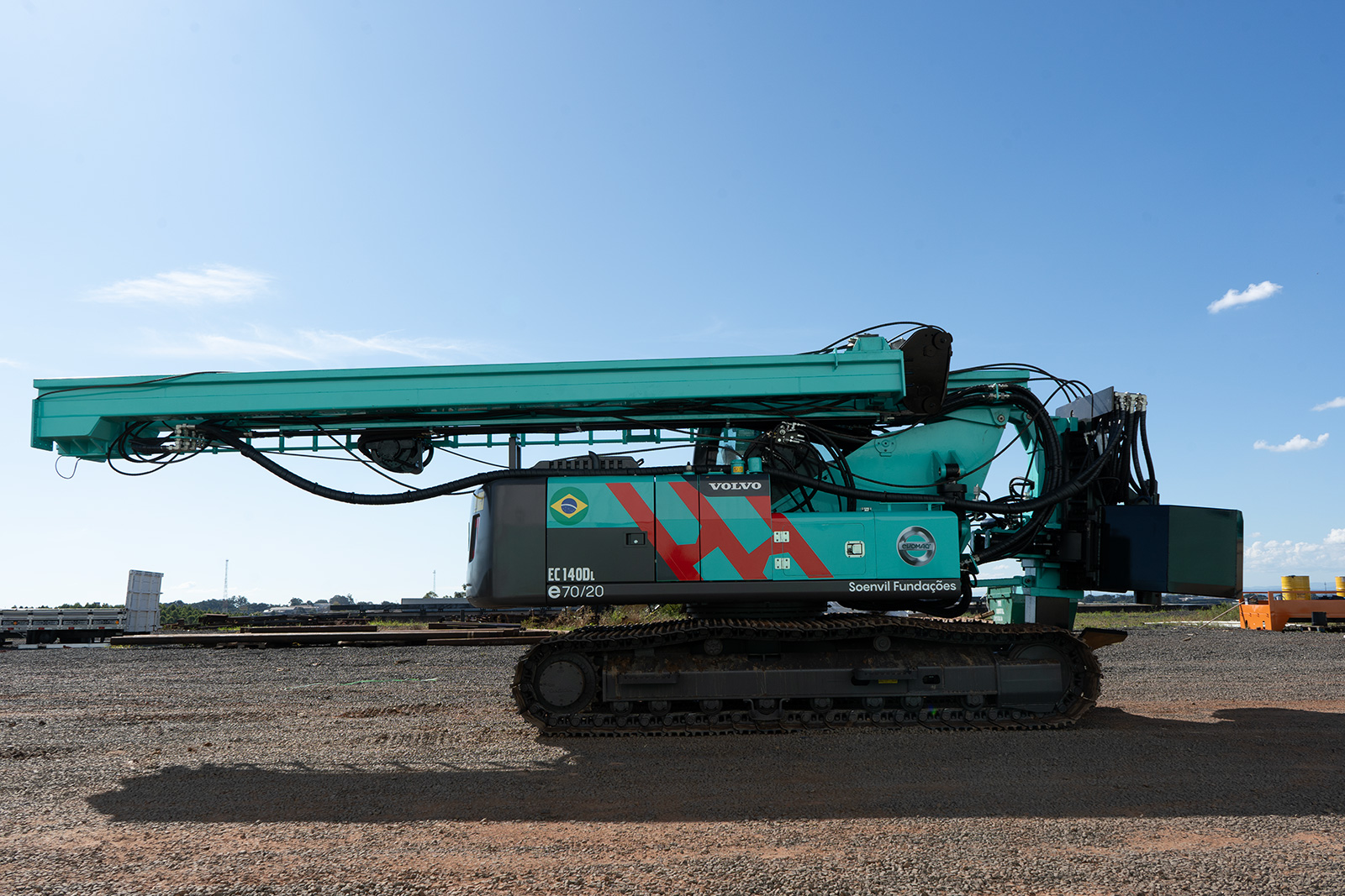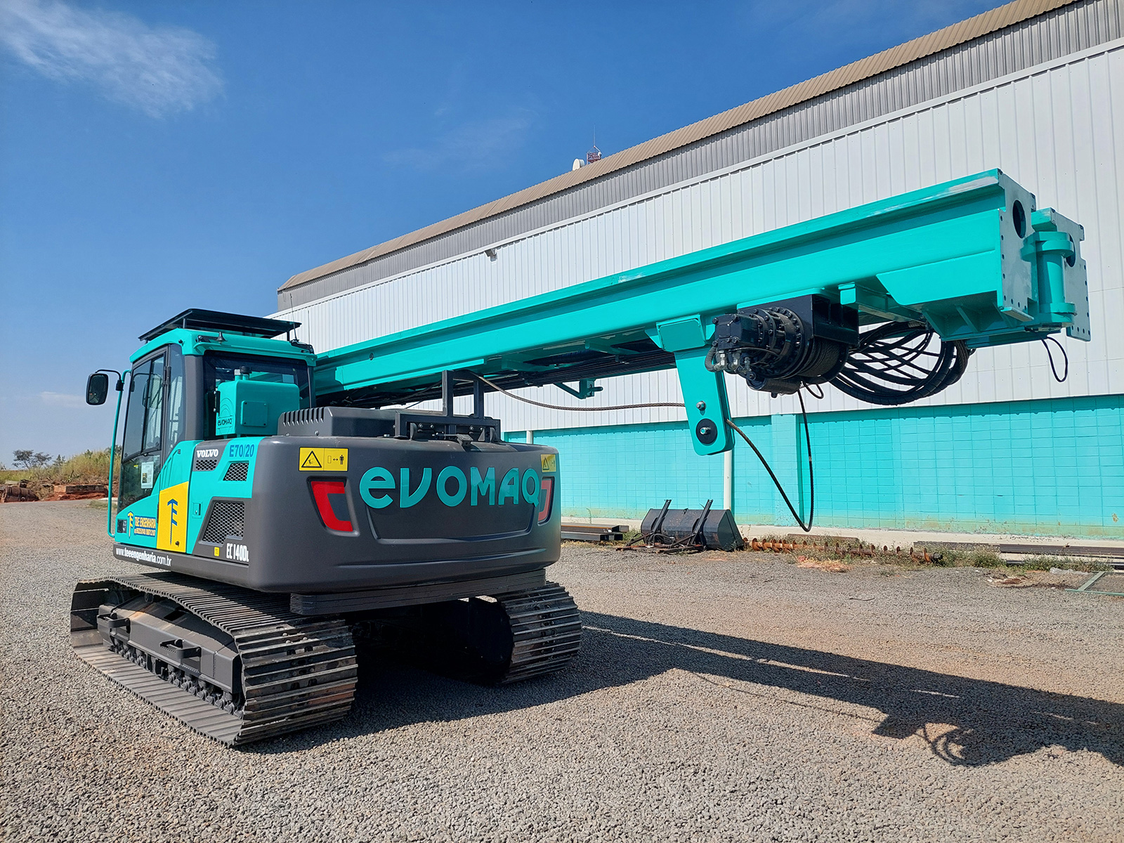 A perfuratriz E70/20 da EVOMAQ® oferece um torque elevado se comparado com máquinas consideradas de grande porte. Sua capacidade de perfurações atinge 700mm de diâmetro e até 20m de profundidade. Desenvolvida em chassi de escavadeira.