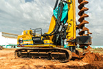 Com esse recurso, o operador pode posicionar a máquina mais distante do talude e avançar apenas a torre até a estaca alocada. Outra grande vantagem é a facilidade de executar o maior número de estacas sem a necessidade de movimentar a esteira do equipamento.