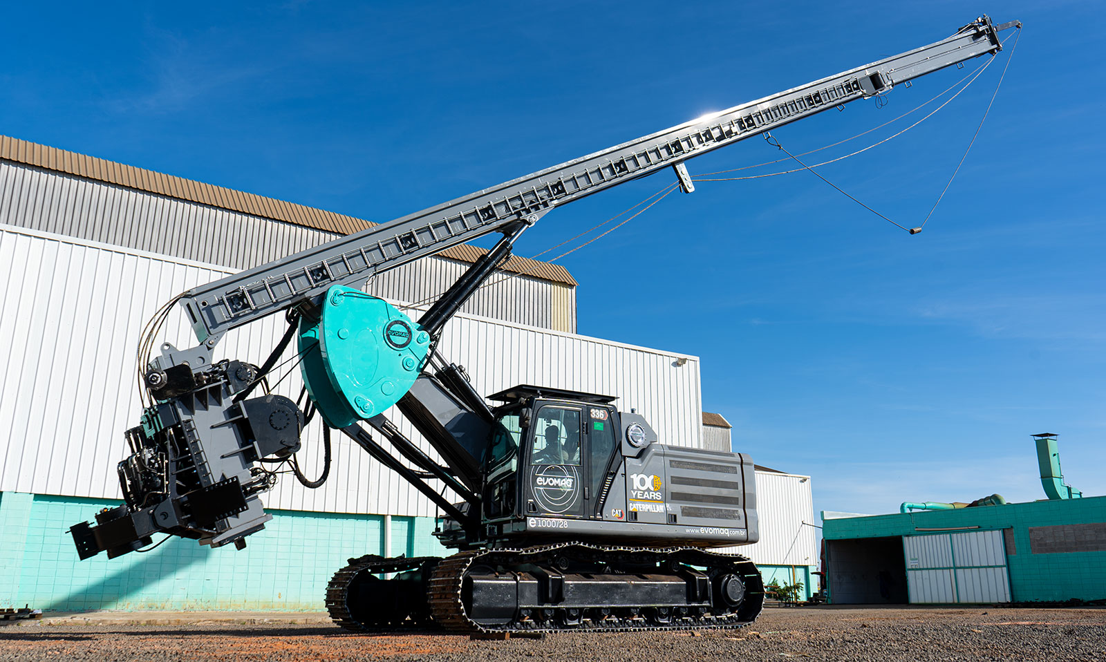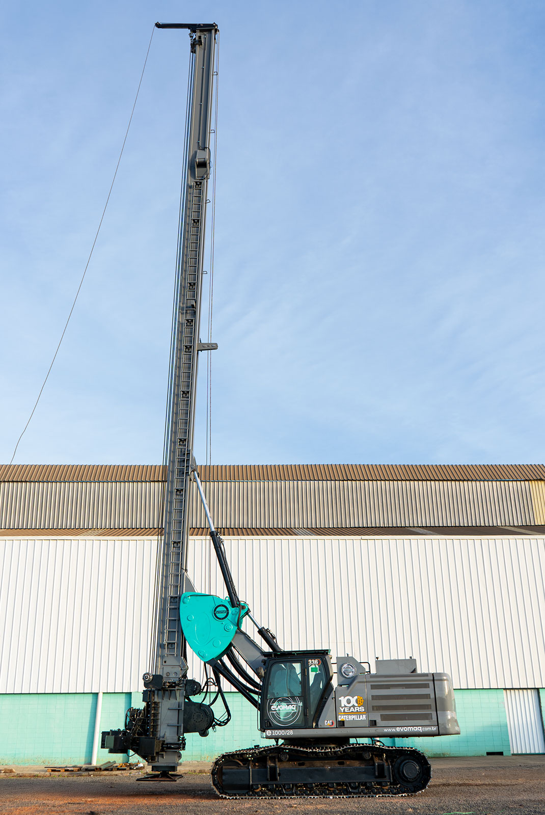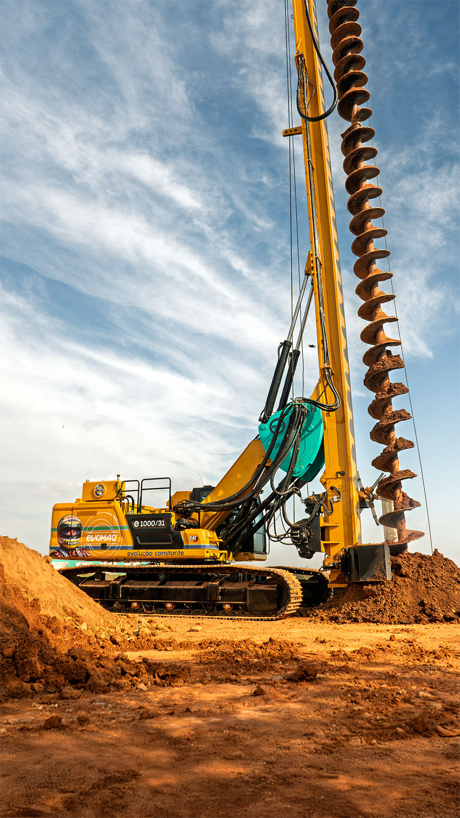 A perfuratriz E1000/31 da EVOMAQ® vem equipada com cabeçote de perfuração TOP DRIVE que conta com a capacidade de 1000mm de diâmetro e atinge 31 metros de profundidade. Com chassi de escavadeira, entrega um torque máximo de 22.000 kgf.m, GIRO 360° do equipamento de modo a maximizar o uso, produtividade e segurança.