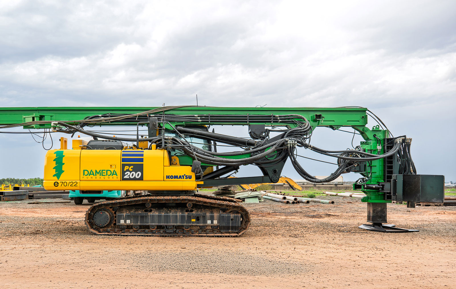 A perfuratriz E70/22 da EVOMAQ® oferece um torque elevado se comparado com máquinas consideradas de grande porte. Sua capacidade de perfurações atinge 700mm de diâmetro e até 22m de profundidade. Desenvolvida em chassi de escavadeira.
