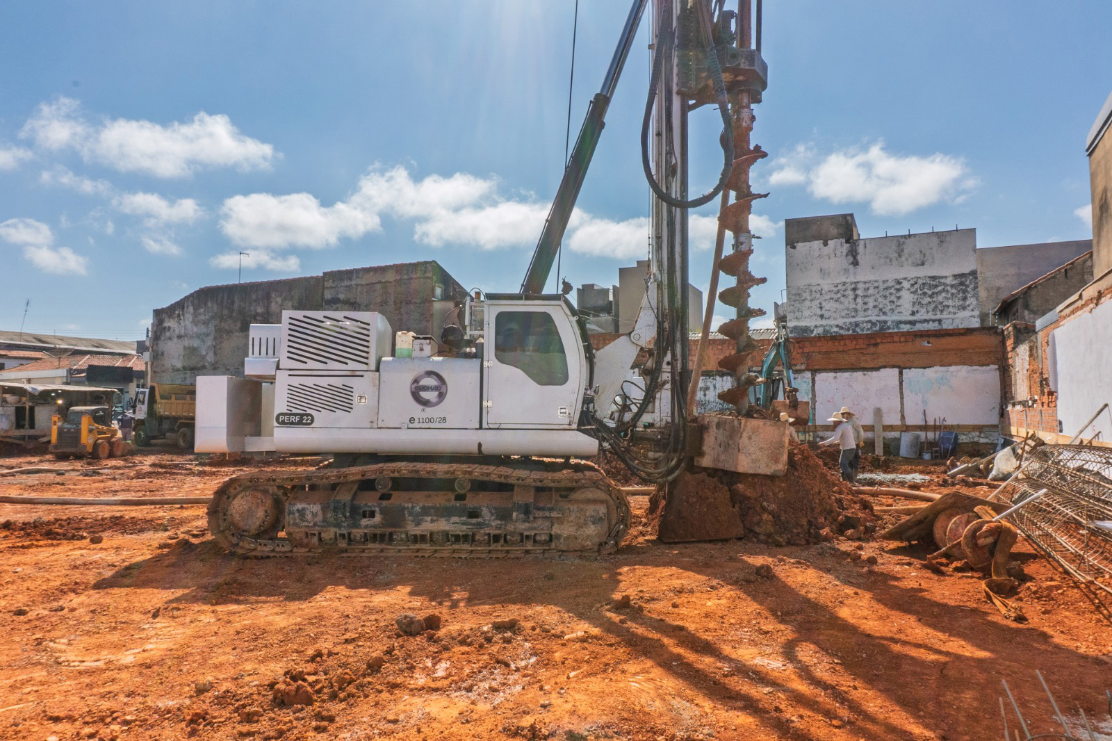 A perfuratriz MAX POWER 1100/28 da EVOMAQ® vem equipada com cabeçote de perfuração TOP DRIVE que conta com a capacidade de 1100mm de diâmetro e atinge 28 metros de profundidade. Com chassi próprio, entrega um torque máximo de 22.000 kgf.m , GIRO 360° do equipamento de modo a maximizar o uso, produtividade e segurança.